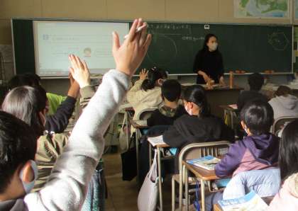 指名された子が、前でかき方を説明しました。