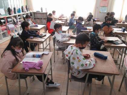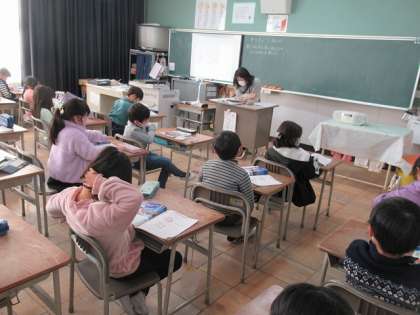 みんな教科書をよく見て、静かに先生のお話をきいていました。