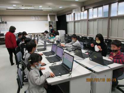 生活単元でパソコンをしました。低学年はマウス・キーボード練習、高学年はプログラミングに挑戦しました。一人一人、自分に合ったものを集中して取り組めました。