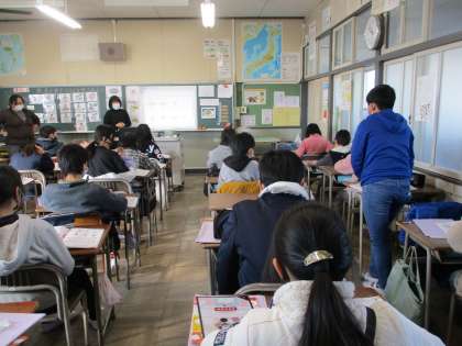教科書の中の田中先生の日課を英語で聞きました。