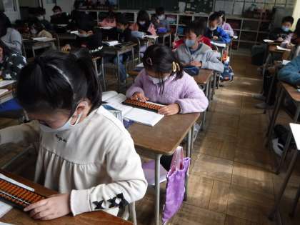 そろばんの授業をしました。習うより、慣れよの言葉の通り、教師も戸惑いながらも繰り返し練習をしています。新たにそろばんを習い始めた子もいるようです。得意なことをどんどん勉強してほしいと思います。