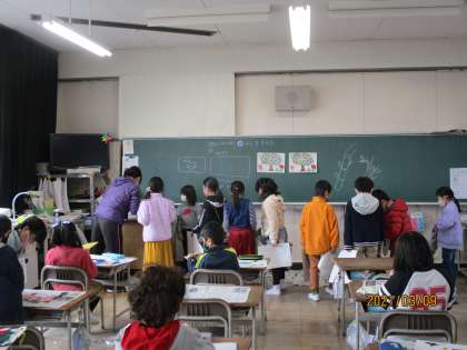 湿らせた薄紙を、紙インクで描いた作品の上にそっと置きます。