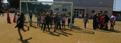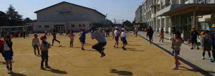 よいお天気の中、運動場にはたくさんの子が遊んでいました。