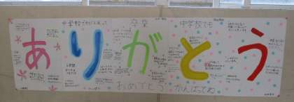 6年生が通る廊下や階段には「ありがとう」の言葉がいっぱいです。