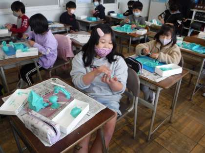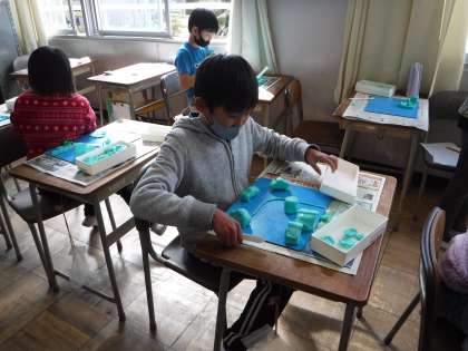理想の空間を表現しました。どの子も、楽しそうに制作しました。嬉しそうに写真におさまるところも素敵です。