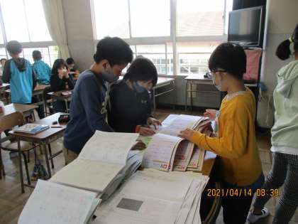 ドリルや音読・リコーダー練習カードなど、毎日の課題になっているものが提出されていきます。