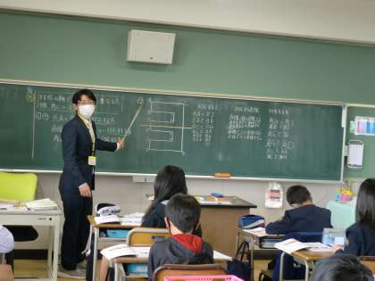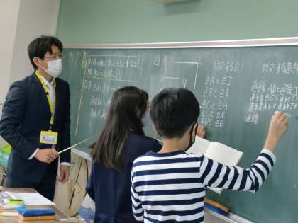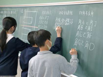 線対称の図形について学習しました。線対称になっているアルファベットを見て、対応する点、直線、角を見つけました。身の回りにも線対称になっているものはたくさんありそうです。