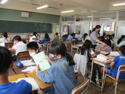 友だちの表現を少し変化させると、どんな短歌になるか、話し合っています。