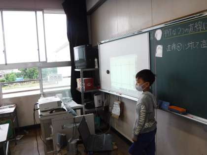 今日の算数の授業では、子ども達がたくさん活躍をしました。二つの直線が平行であることを色々な角度から子ども達が説明をしました。みんなで考えられるのは嬉しいですね。