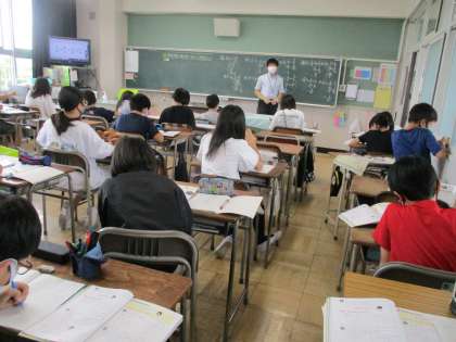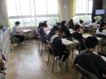 指導教諭は子ども役になって授業を受けながら、気づいたことをメモしていました。