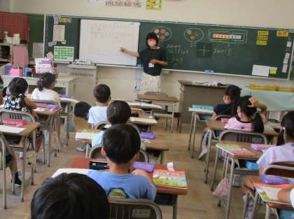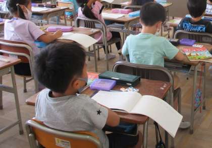子どもたちは黒板を見ながら、一生懸命書いていました。