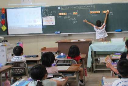 子どもたちはどんどん手を挙げて自分の考えを発表していました。