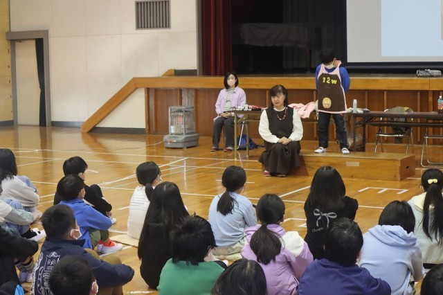 調理実習の様子です。自分の役割を終えた後も協力して助け合い進めています。ベーコン...
