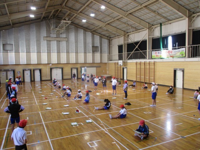 2クラス合同で体育の授業を行いました。リズムなわとびのできる級をどんどんと増やし...