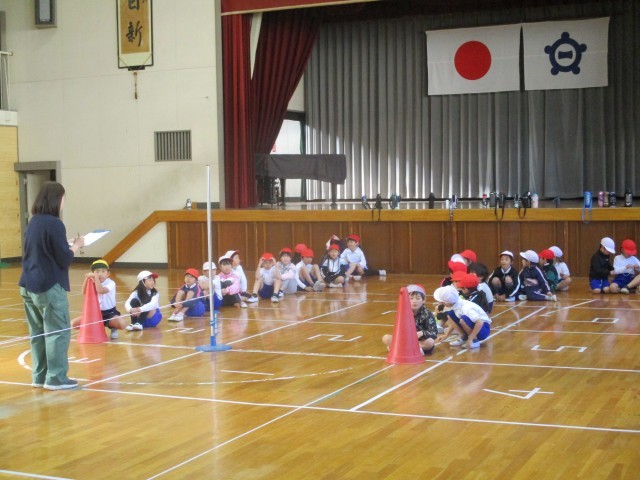 ゴムひもをはり、ジャンプしてとびこえました。ひもに体がふれないように工夫してとぶ...