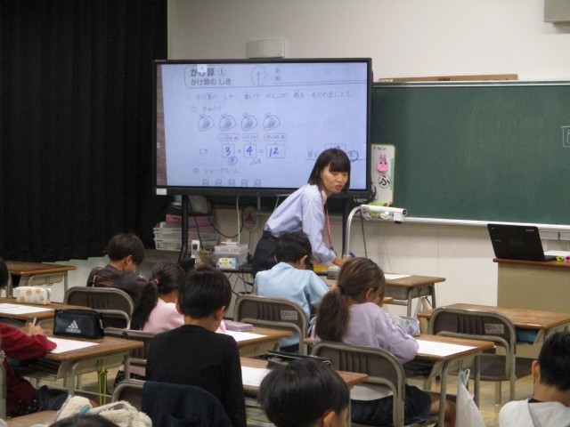 かけ算の練習問題に取り組んでいました。