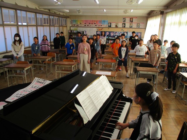 「大切なもの」の合唱をしました。児童が伴奏を弾いていました。歌も伴奏もとても上手でした。
