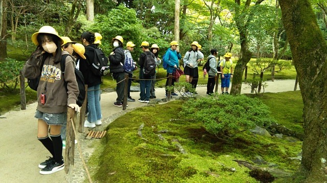 銀閣寺の見学です。社会科で学習した室町時代のことを思い出しながら巡ります。