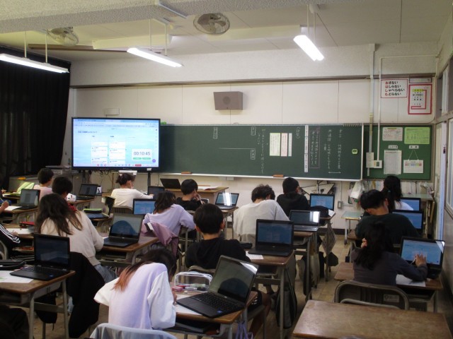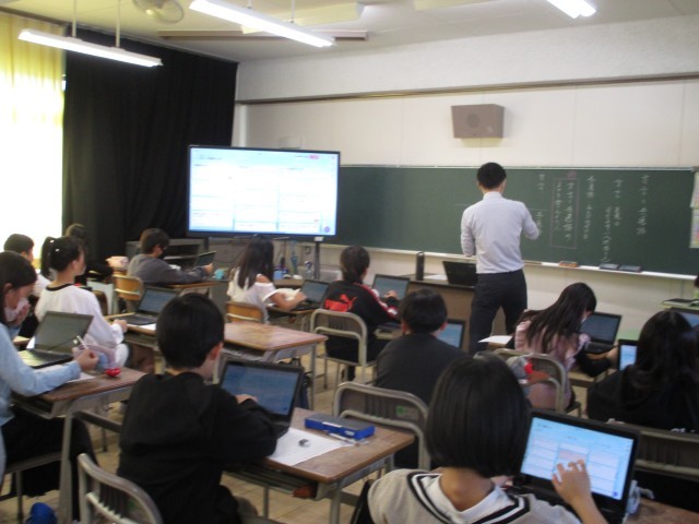 国語の「方言と共通語」の学習です。クロームブックを使って学習に取り組んでいます。