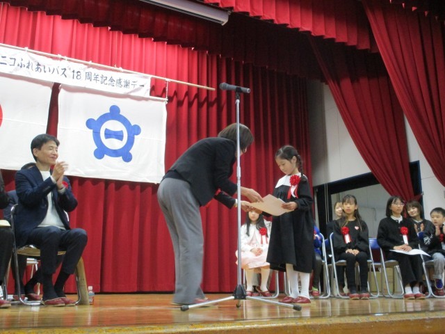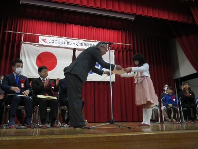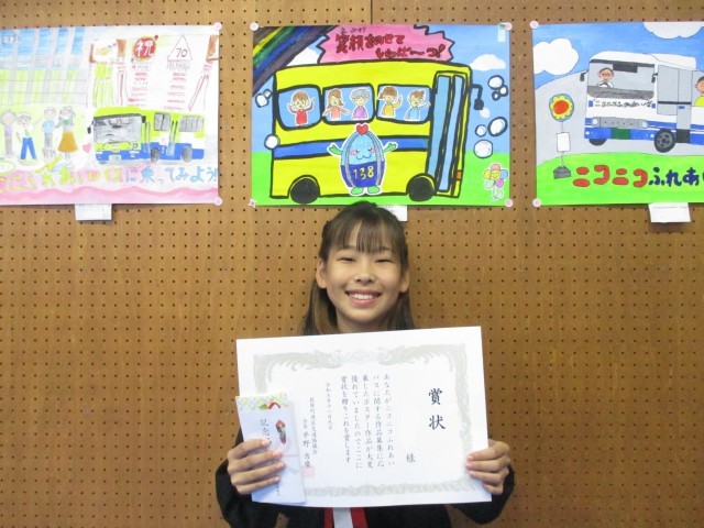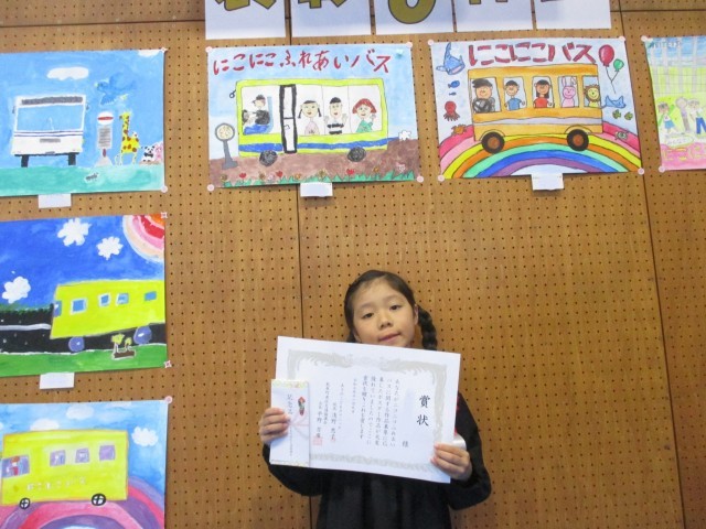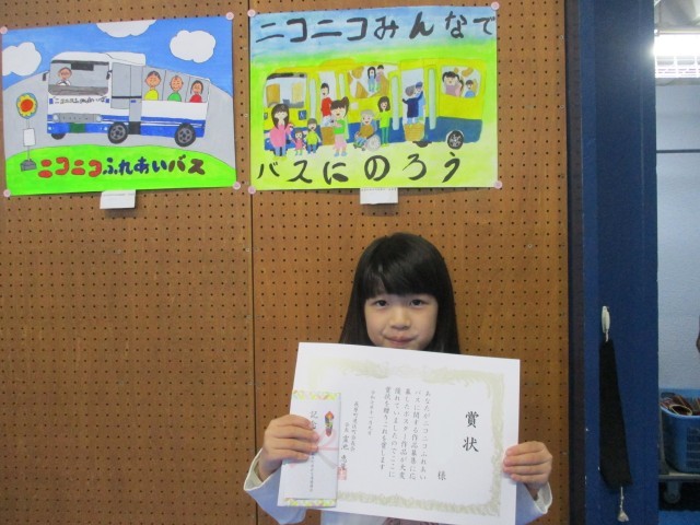 今日は「ニコニコふれあいバス感謝祭」で、ポスター作品の表彰が行われました。