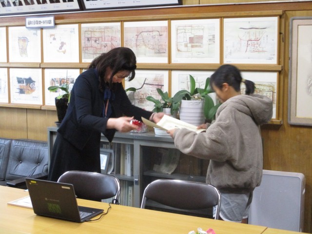 書写コンクールの受賞者と作文コンクールで入選しました。いろいろな場面で活躍しています。