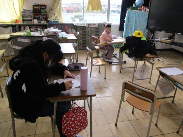 ほかの友達がいもほりなどに出かけていてちょっと人数が少なかったですが、がんばっていました。