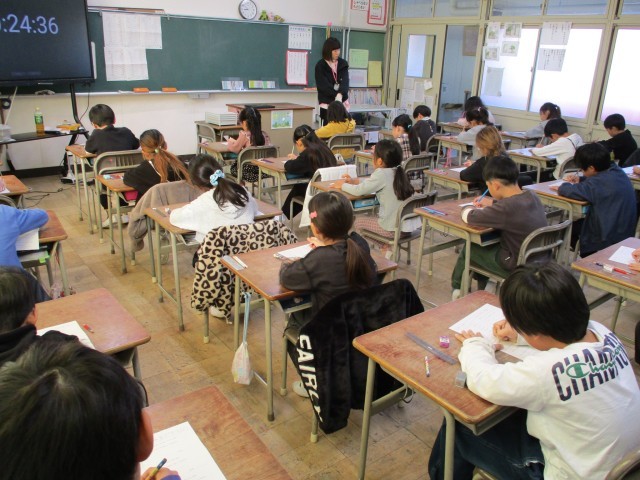 かけ算のテストに取り組みました。みんな、真剣なまなざして問題を解いていました。