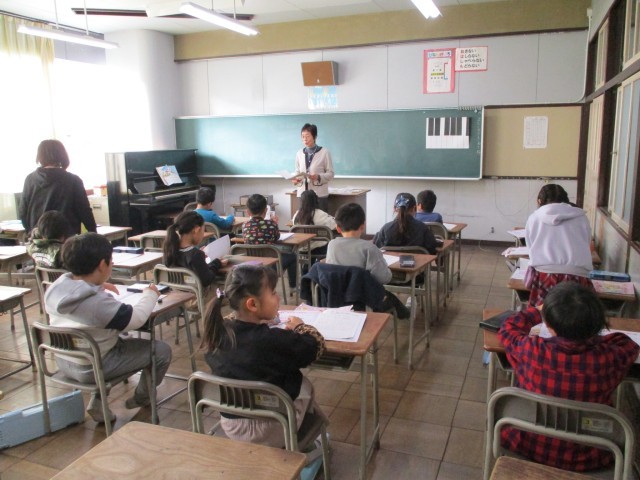 今日は「もりのくまさん」の学習です。歌詞を確認していました。