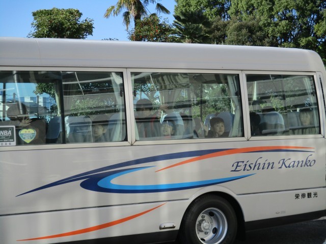 今日は、待ちに待った水泳です!バスに乗って出かけました。