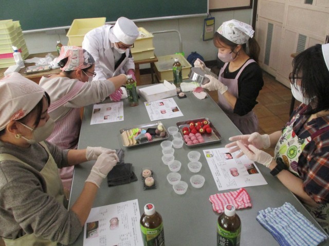 本日、PTA研修会として「和菓子作り体験」を行いました。今回は 和菓子司 野田屋菓子舗の野田錦市様を講師にお迎えし、いちご大福・ねりきり・わらび餅の3種類の和菓子づくりに挑戦しました。参加者の皆さんは丁寧なご指導のもと、和やかな雰囲気で楽しく活動することができました。できあがった和菓子を見て自然と笑顔が広がり、「上手!」「おいしそう!」「家でも作りたい」といった声も聞かれました。参加された皆さまにとって、和菓子の魅力に触れながら交流を深める、充実したひとときとなりました。ご参加いただいたPTA会員の皆さま、そしてご指導いただいた 野田屋菓子舗の野田様、本日はありがとうございました。