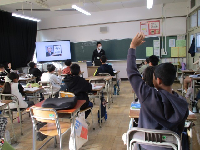 授業のはじめ、先生のお話にじっと耳を傾けていました。