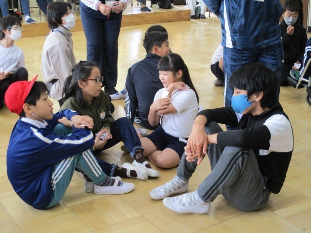 今日は、萩原中学校で萩原中学校と萩原小学校の子たちと一緒に運動会と交流会を行いました。運動会では、中島小学校の児童が司会をして進行しました。笑顔いっぱいのたのしい会になりました。