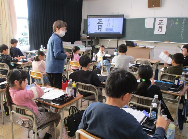 毛筆で「正月」と書きました。もうすぐお正月ですね。