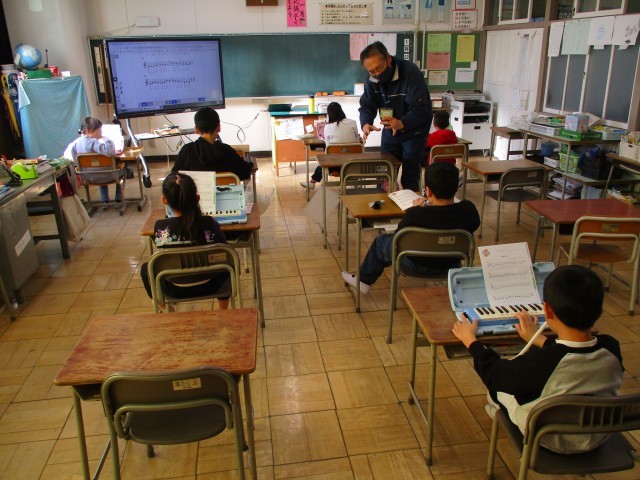 ソプラノリコーダーや鍵盤ハーモニカで合奏しました。