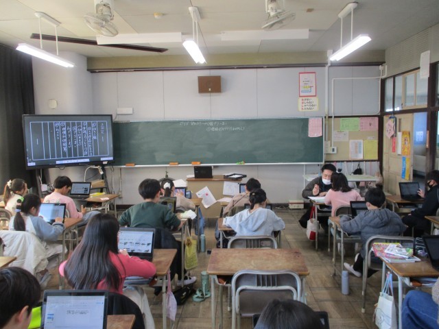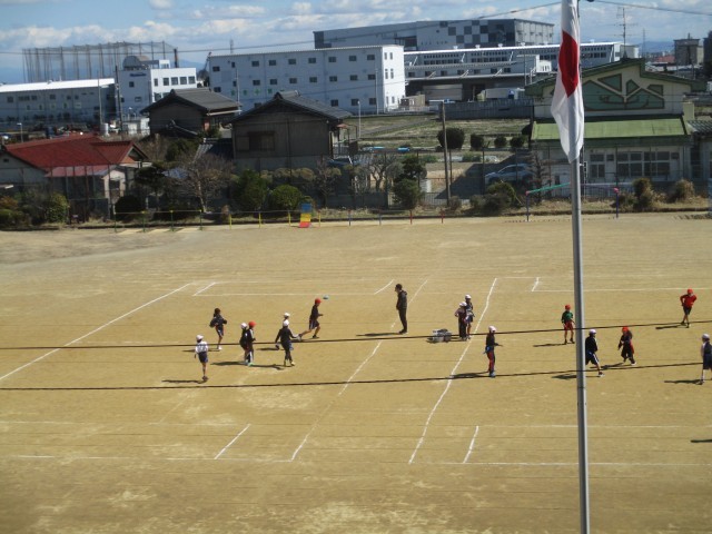 5-1の体育の授業では、寒い中ですが、元気に走り回っています。