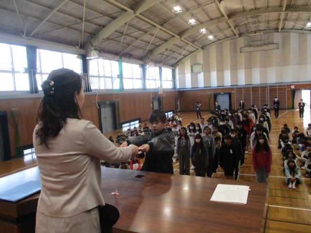 修了式が行われました。学年ごとに修了証を受け取りました。