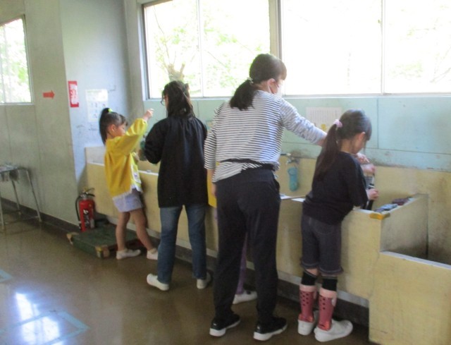 習字道具の片づけをしていました。
