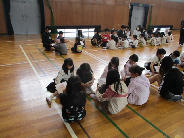今日は6年生と1年間ペアを組む6年生のお兄さん、お姉さんとの名刺交換です。