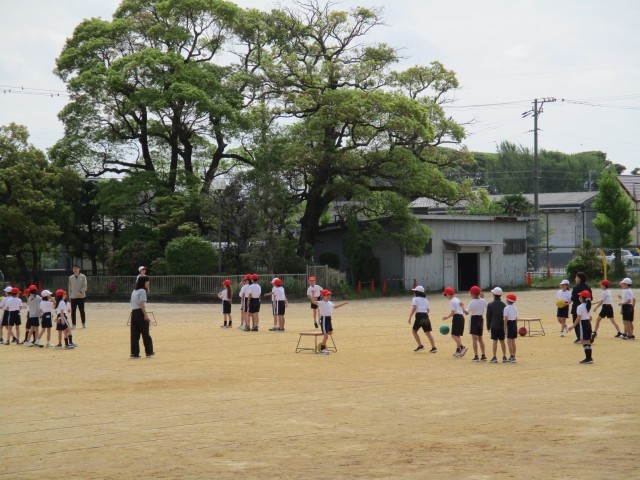 運動場で体をいっぱい動かしました。少し汗ばむ陽気でした。