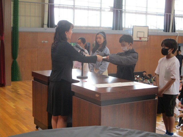 今日は任命式でした。学級役員や委員会委員長が任命されました。学校やクラスのために力を尽くしてくれると思います。