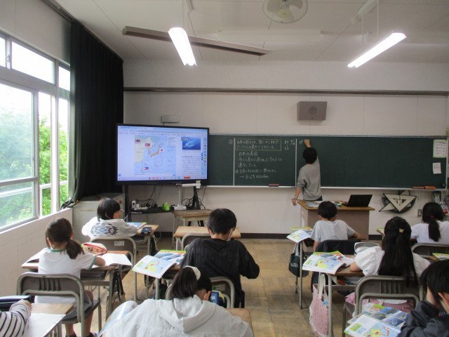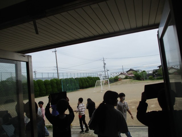 5年生の授業では、社会や理科の学習に取り組みました。理科では、空の様子を観察しながら雲の写真を撮影し、身近な自然に目を向け、学びを深める様子が見られました。