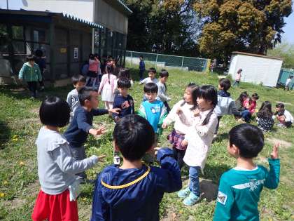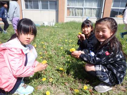 おにごっこをしたり、たんぽぽ摘んだり…