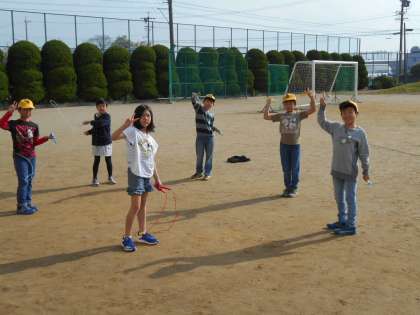 縄跳び練習をする4年生。
