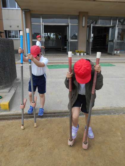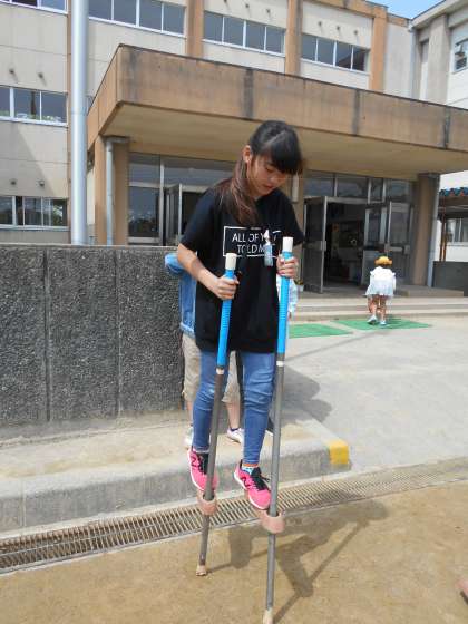 5年生の子は、高い竹馬で