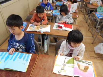 1年2組の教室。