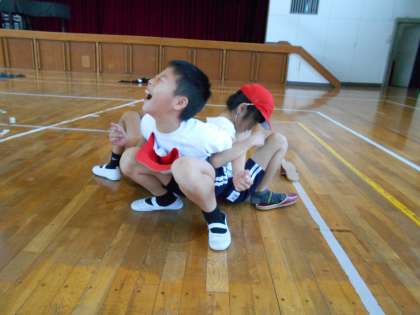 今日の体育は四列横隊や集合の確認と体を使って簡単な運動をしました。