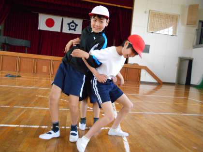 友達と背中合わせになった状態で手を使わず立ち上がること。