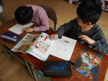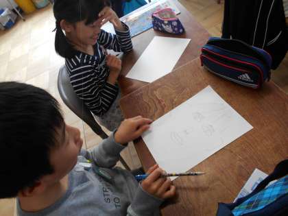 よく観察して鉛筆で下描きをしています。