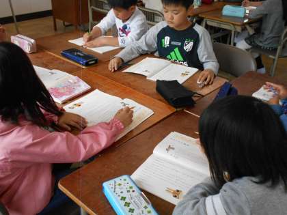 明日グループごとに音読発表会をします。