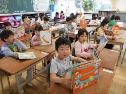 1年2組の教室。